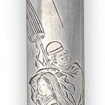 a courtesan and servant holding an umbrella on the reverse sheltering from a storm blown down by Raijin and Raiden on the obverse, signed Sano Naonobu (Haynes 6742) with a kao;