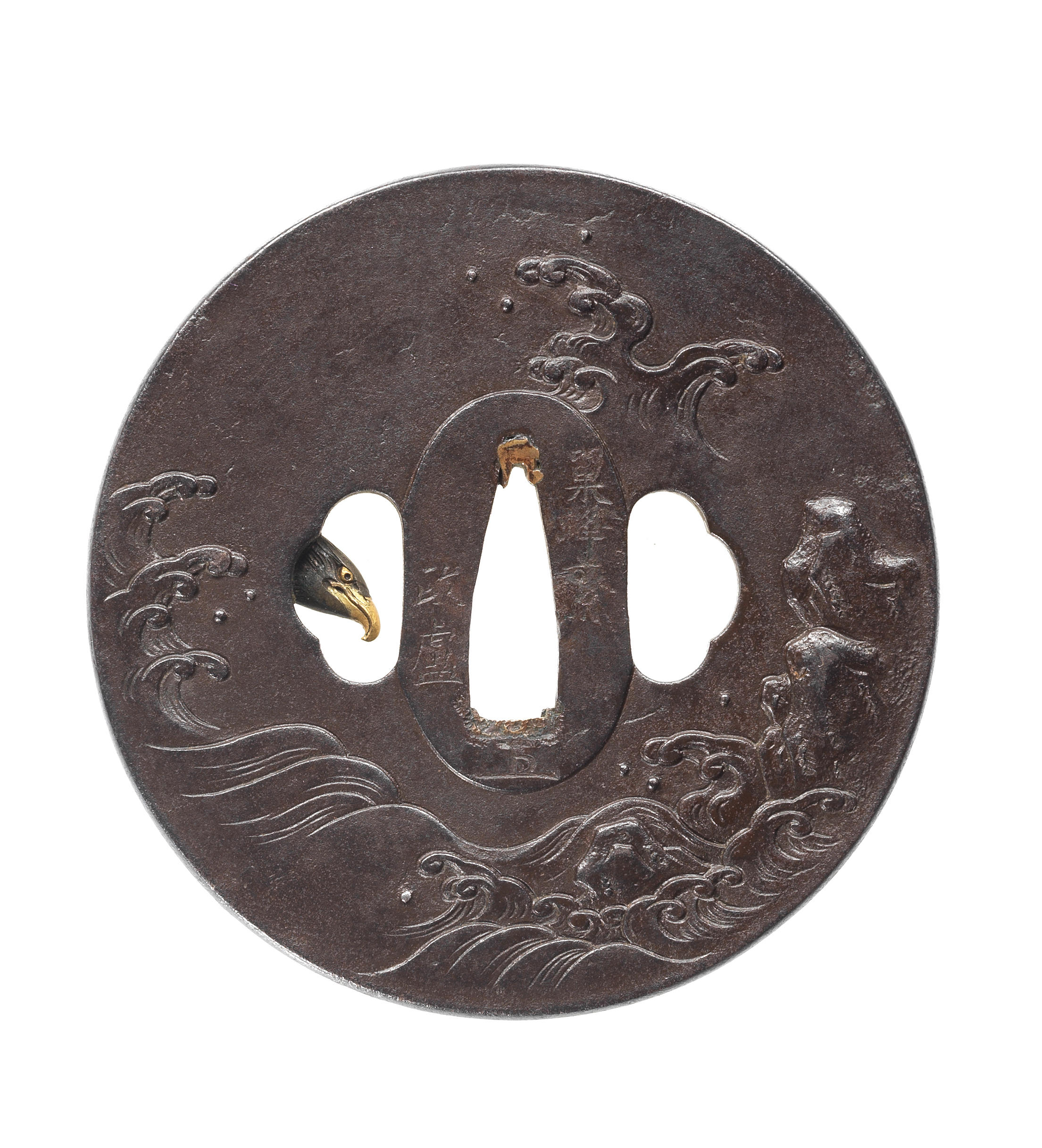 鍔 荒波に海鷲 銘「巣蜂齋政盧」「武州住正恒」 19世紀