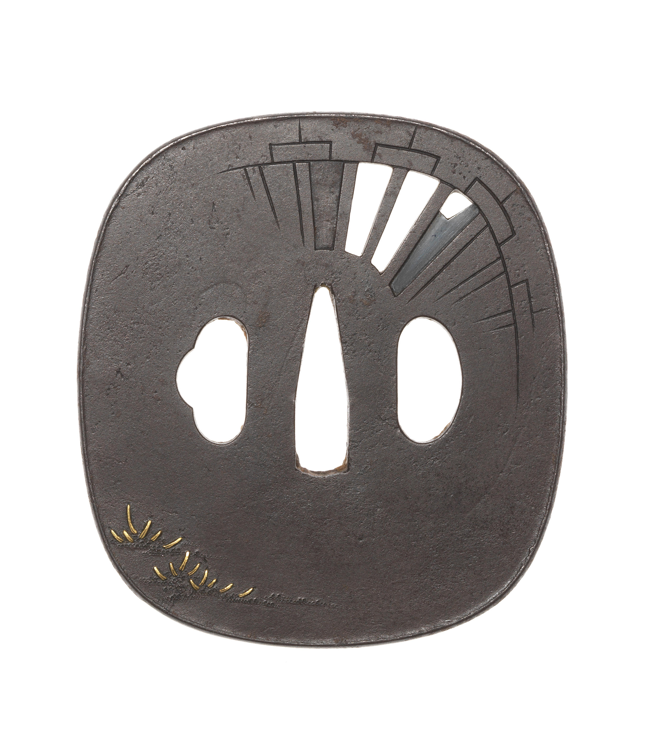 For the maker, see Haynes, Index, no.H10323. He was a student of Tanaka Kiyotoshi and apparently was a guard at Nijo Castle in Kyoto, making tsuba as a hobby.