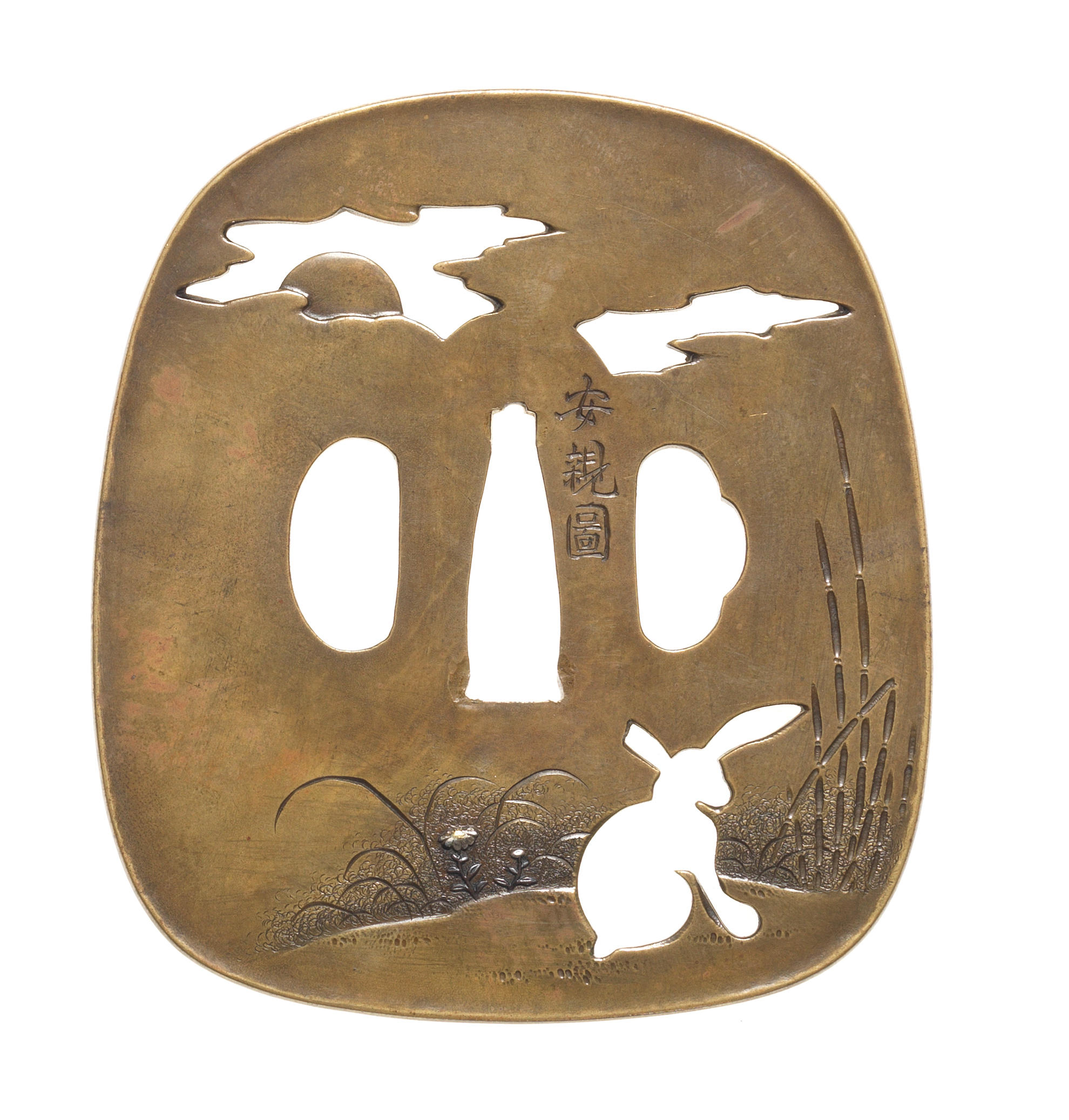 鍔 月に兎図 銘「月光弘(花押)」「安親図」 19世紀