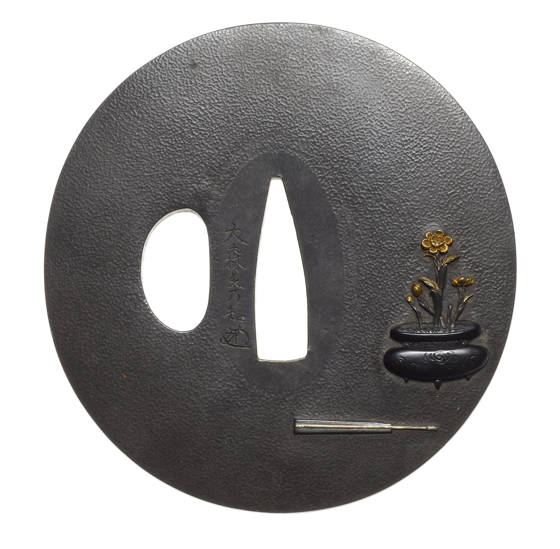 鐔 生け花と小道具 銘「大森秀知(花押)」 18世紀後期/19世紀前期