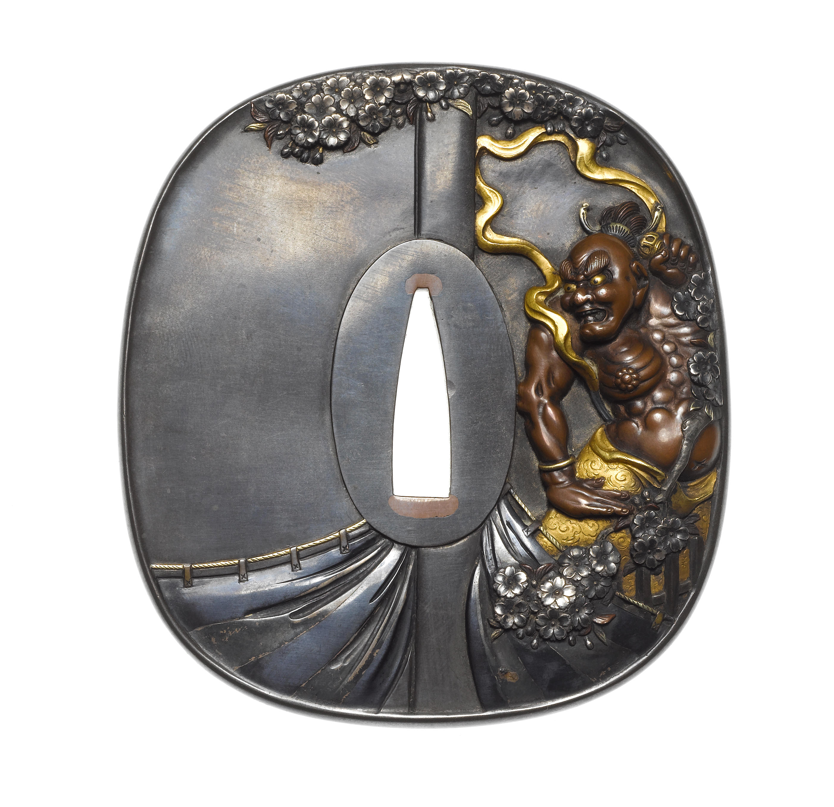 鐔 桜に仁王 銘「家在花水之陽 竜法眼 清寿(方印)」 19世紀後期