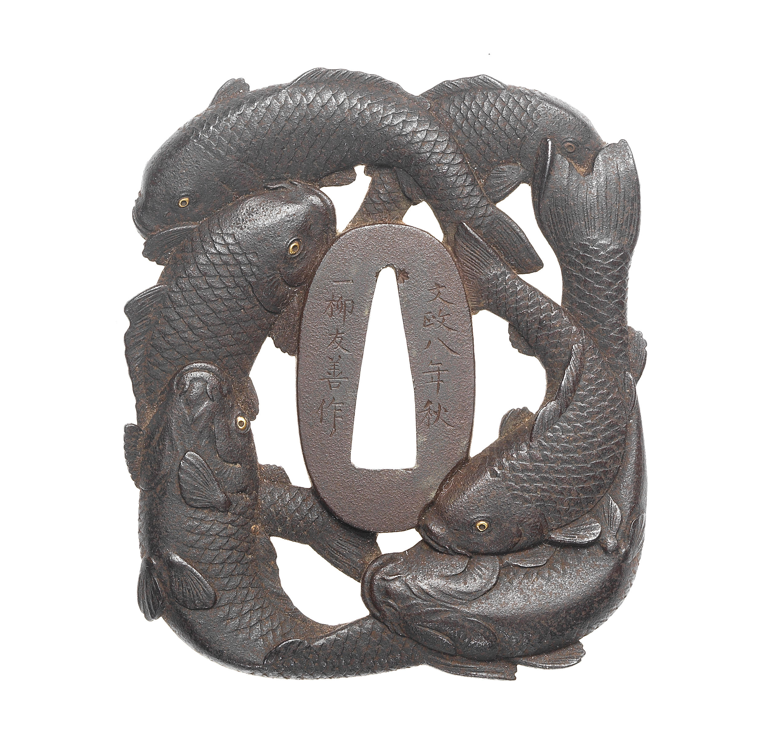 鍔 魚六匹 銘「文政八年秋一柳友善作」 1825年
