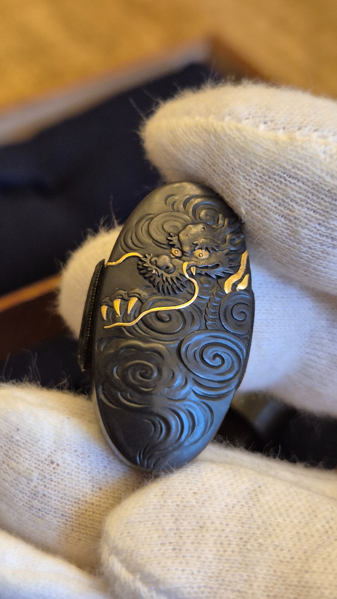 * Kashira: A dragon (ryū) emerging from dense clouds.