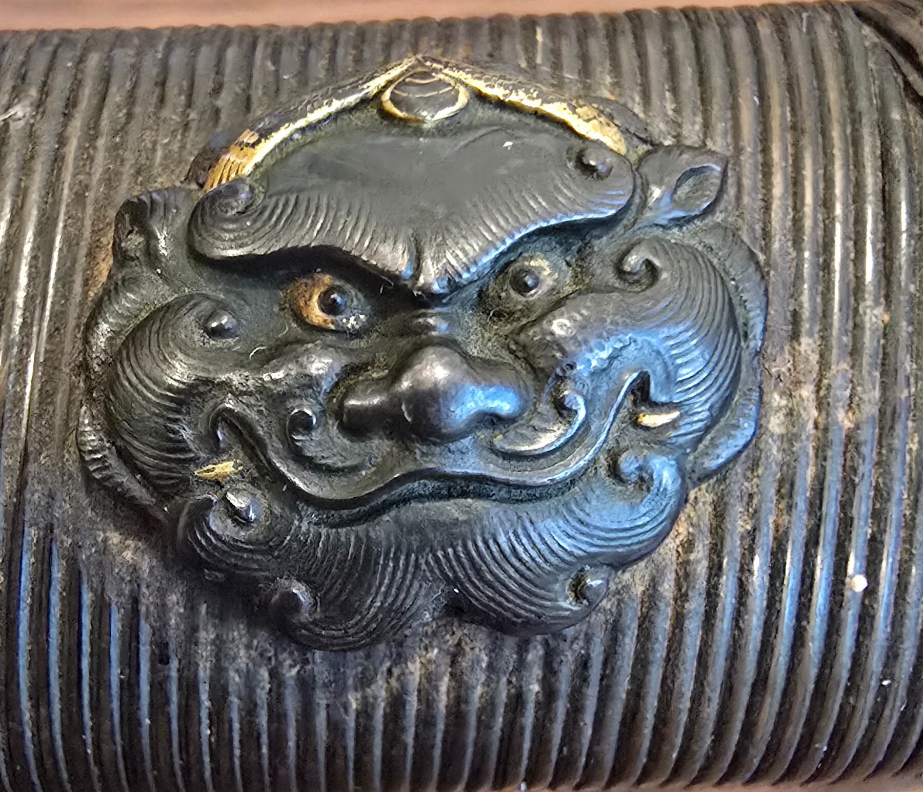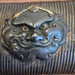 Japanese shakudo metal (kara-shishi) tsuba with ...