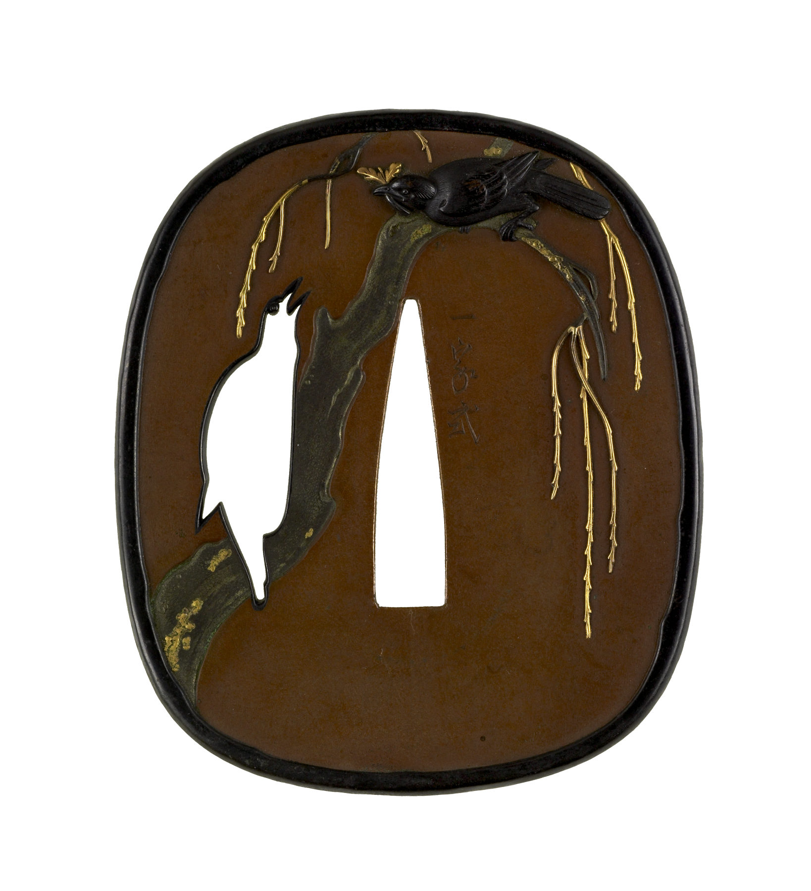 Tanaka Kiyotoshi – Tsuba with Birds in a Spring Willow